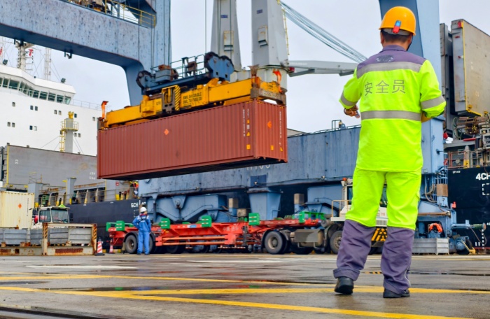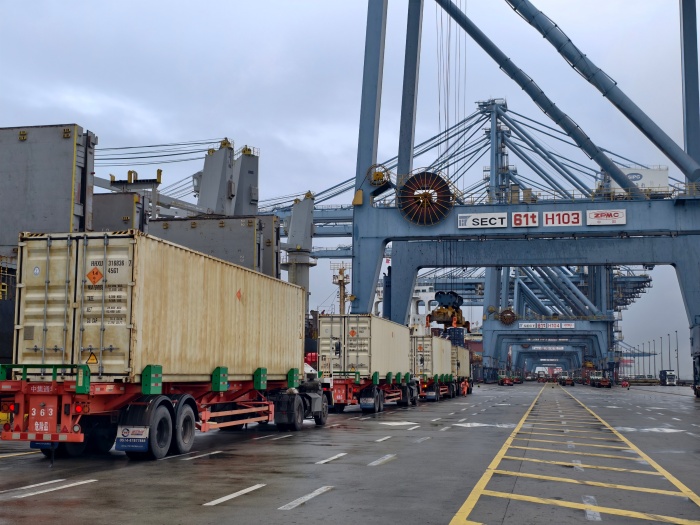 作业期间,各环节衔接流畅、配合紧密。驳船预留最佳位置停靠,全程一卸一装仅使用2条作业路和4辆内集卡作业。引导车按照预设路线引领内集卡通行,全程有条不紊;单船指导员与中控室保持实时高频沟通,根据货物装卸节奏动态调整倍位和操作指令,配合默契无间;现场管理人员通过现场巡查与流程管控,科学统筹开关舱与绑扎作业时间,有效避免效率损耗。针对内集卡调度环节,公司进一步强化安全管控,实施作业区域封闭管理,严防无关人员与车辆进入,切实保障人机混合作业环境下的操作安全。