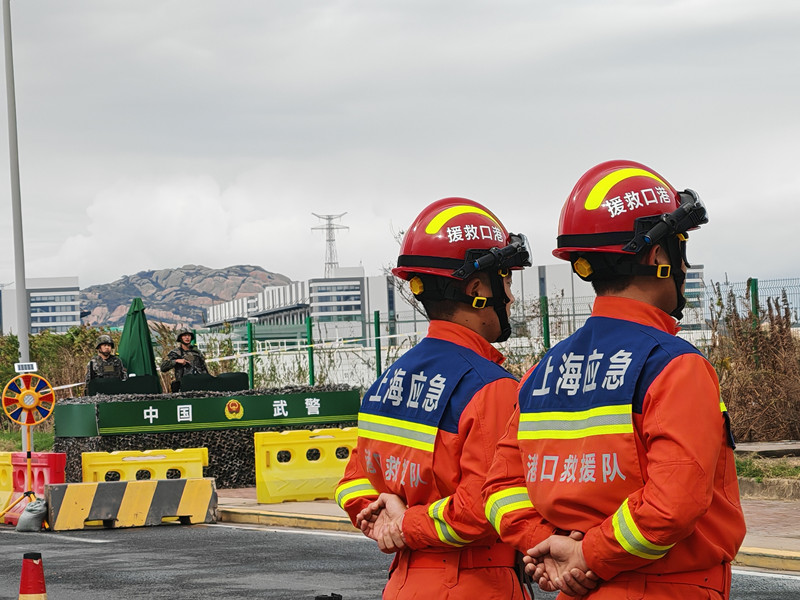 为全面保障进博会期间上海港的安全运行,服务保障国家产业链供应链的安全稳定,上海应急港口救援队与上海武警某支队以“迎进博、保平安”为主题在洋山港区开展联勤联训,共同筑牢进博会一线口岸安全防线。