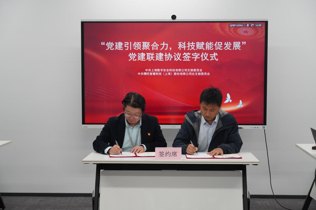 为充分发挥党建引领作用,搭建互学互鉴平台,推动党建引领与业务协同深度融合,近日,哪吒智慧科技(上海)股份有限公司(以下简称“哪吒科技”)与上海数字安全科技有限公司(以下简称“数安科技”)联合举办党建联建活动,共同开展“党建共建聚合力 数字赋能促发展”主题活动。双方党组织成员及青年骨干参加活动。