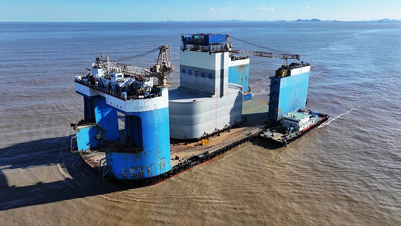 2025年12月28日,小洋山北作业区西防波堤工程第100个桶式基础结构顺利完成沉放,在波涛中勾勒出一道2公里长的堤身,为内侧施工区拦住了外海波浪,筑起了一道安稳的屏障。