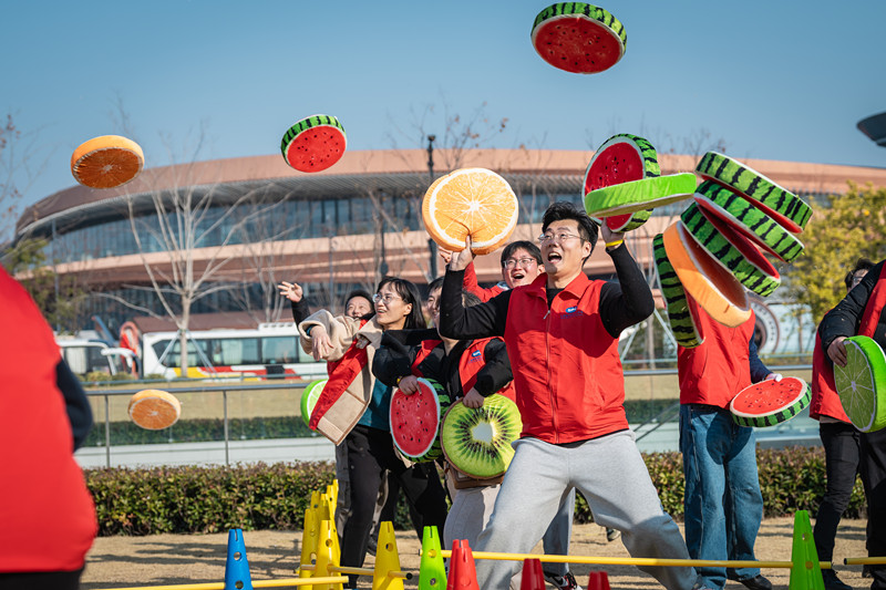 快乐成“双”,“趣玩+共舞”燃动全场。动感的疯狂动物城音乐响起,全员齐跳活力洋溢;趣味游戏里,抬头是漫天飞扬的“枕头雨”,伸手是心链“箱”连的默契考验,并肩是四方聚力的团队交锋,手脚并用、协作闯关,笑声不断……大家被藏在游戏环节里的“小彩蛋”击中,不由自主地举起手机,拍下的“十佳表情包”张张精彩,成了员工间距离拉近的独家记忆。