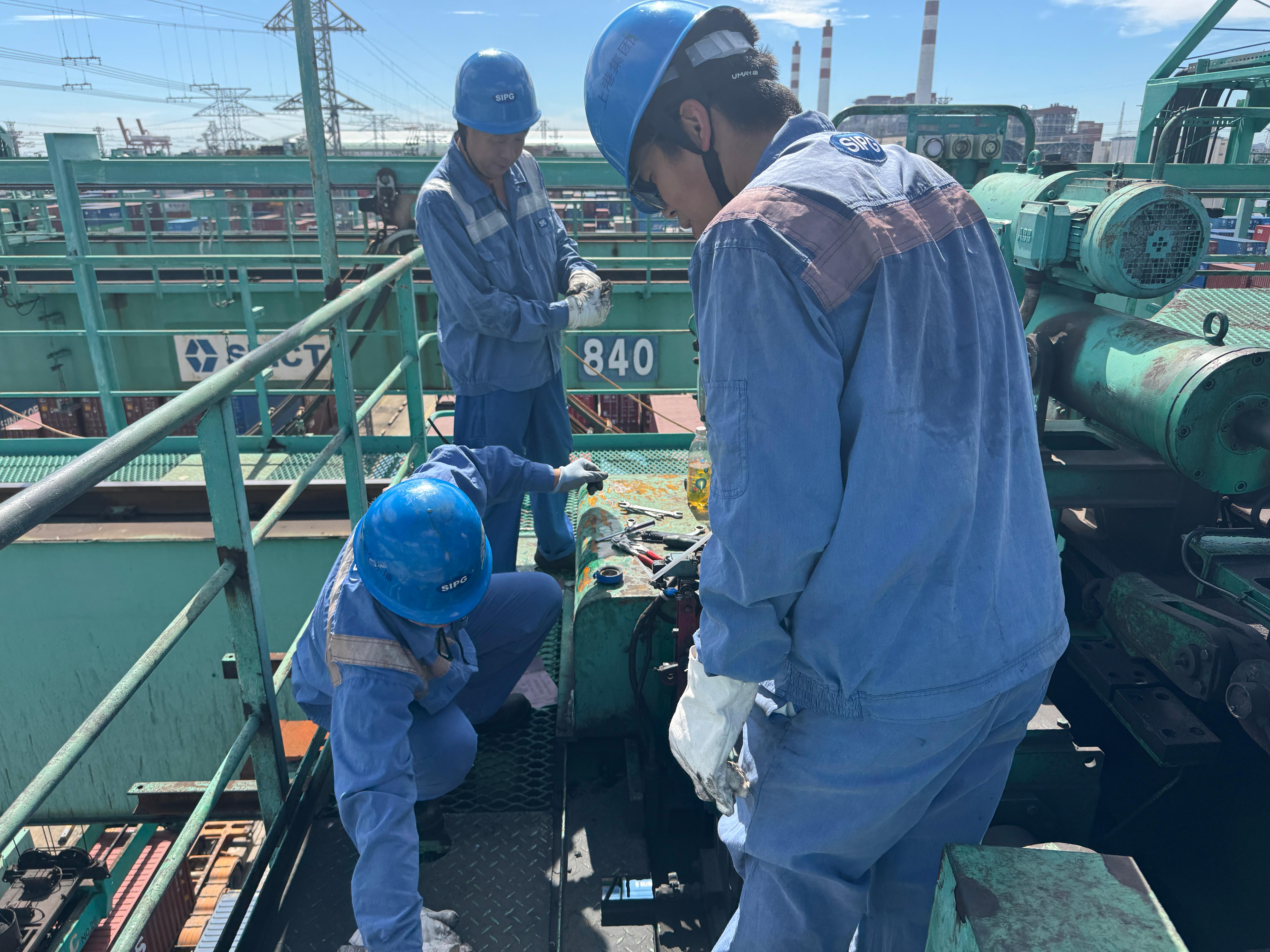 针对生产持续高位运行致使设备维保停机时间不足的难题,公司打破传统思维,创新推出“寻缝插针+多档作业”维保模式。2025年全年,通过“寻缝插针”模式完成桥吊非计划维保停机559小时,占总停机时间的61.9%;组织桥吊计划维保77台次,共计342小时,其中开展多档维保作业约45次,实际累加完成停机维保125台次。该模式有效确保了大型机械的维保时长,为持续高位生产打下了坚实的基础。