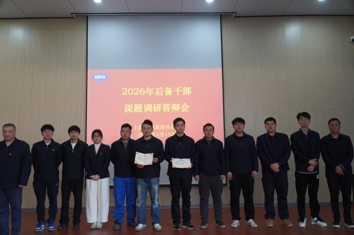 近日,在公司会议中心召开了龙吴分公司2026年后备干部课题调研答辩赛,公司分管领导、相关部门负责人组成考官团队。邀请公司领导莅临现场,各部门党政主要领导、党员及职工代表到场观摩。
