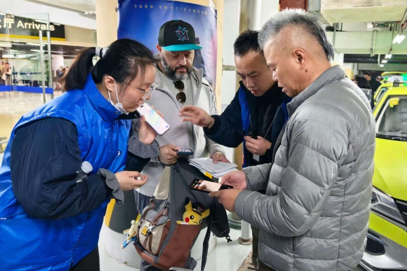 客货运业务部李申杰和刘彤彤正在仔细核对旅客的目的地信息,通过地图逐街逐巷查找坐标,对着屏幕反复确认,确保将每一位旅客,准确无误地送达目的地。