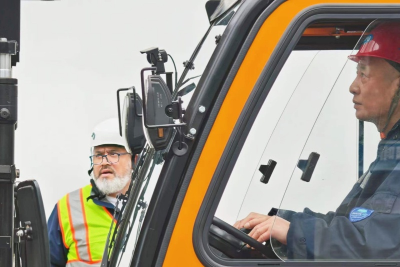 叉车司机老韩正低头擦拭叉车,每一个空挡都不放过。镜头里,他专注的神情和那辆被擦得锃亮的叉车,成了码头上一道安静的风景。