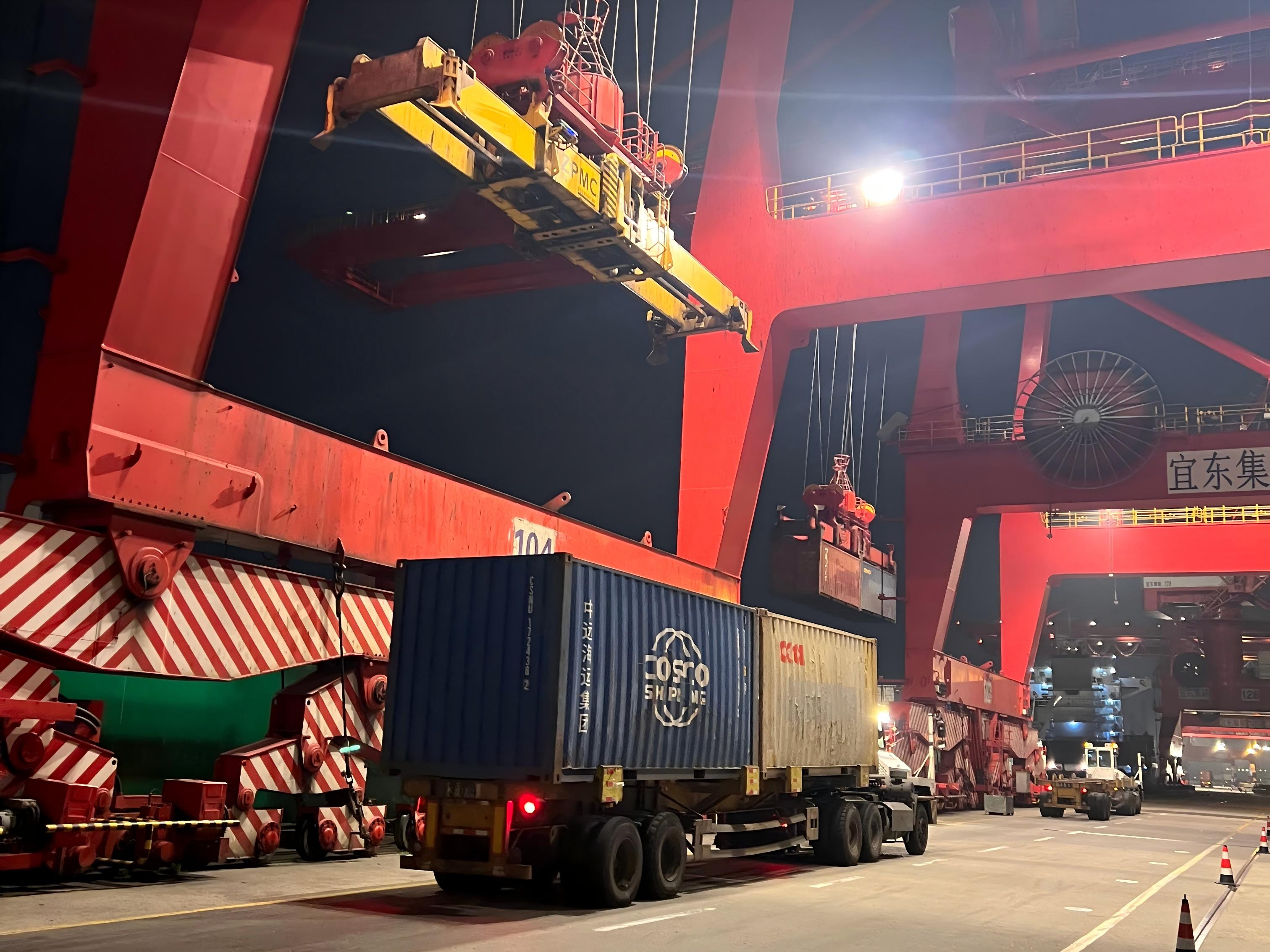 近日,“伯晟 17”轮因故延误一个小时靠上了宜东分公司张华浜作业区,且箱量较为饱满。为保障船期节点,该公司营运操作部党工团突击队迅速集结、连夜攻坚,经过12小时连续作业,高效完成全船装卸任务,确保船舶准点离泊。