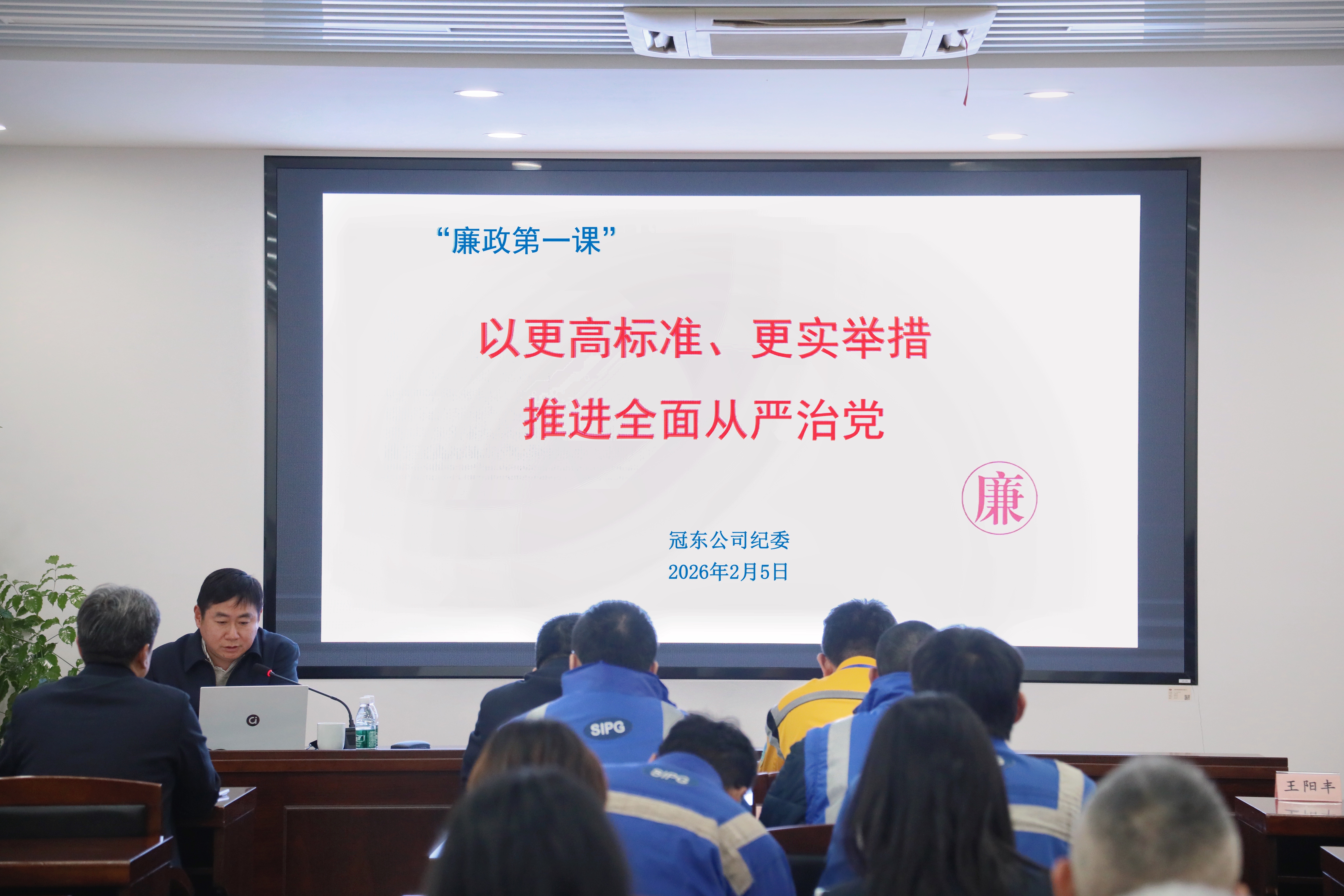 2月5日,冠东公司连续第三年开展年度“廉政第一课”。公司纪委书记以“以更高标准、更严举措,推进全面从严治党”为主题,围绕深刻领会二十届中纪委五次全会精神特别是习近平总书记在全会上的重要讲话精神、准确把握新一年集团和公司党风廉政重点工作、严格落实春节期间党风廉政要求、廉洁文化建设等上专题廉政党课,公司中层管理人员、主管级管理人员、“三级预控网络”关键岗位人员代表四十余人参加。