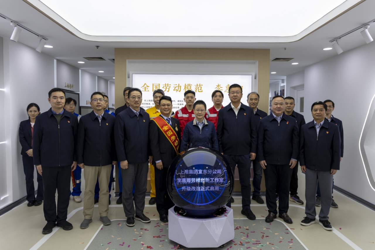 2025年11月4日下午,宜东分公司李惠卿劳模创新工作室升级改造启用仪式在集祥大楼二楼隆重举行。集团党委副书记、工会主席庄晓晴,集团工会副主席王晶奇、宜东分公司领导班子与全国劳动模范李惠卿共同为工作室揭幕。宜东分公司相关职能部室负责人、各职工创新工作室代表一同见证了这一重要时刻。启用仪式后,在讲解员的引导下,全体与会人员参观了工作室。