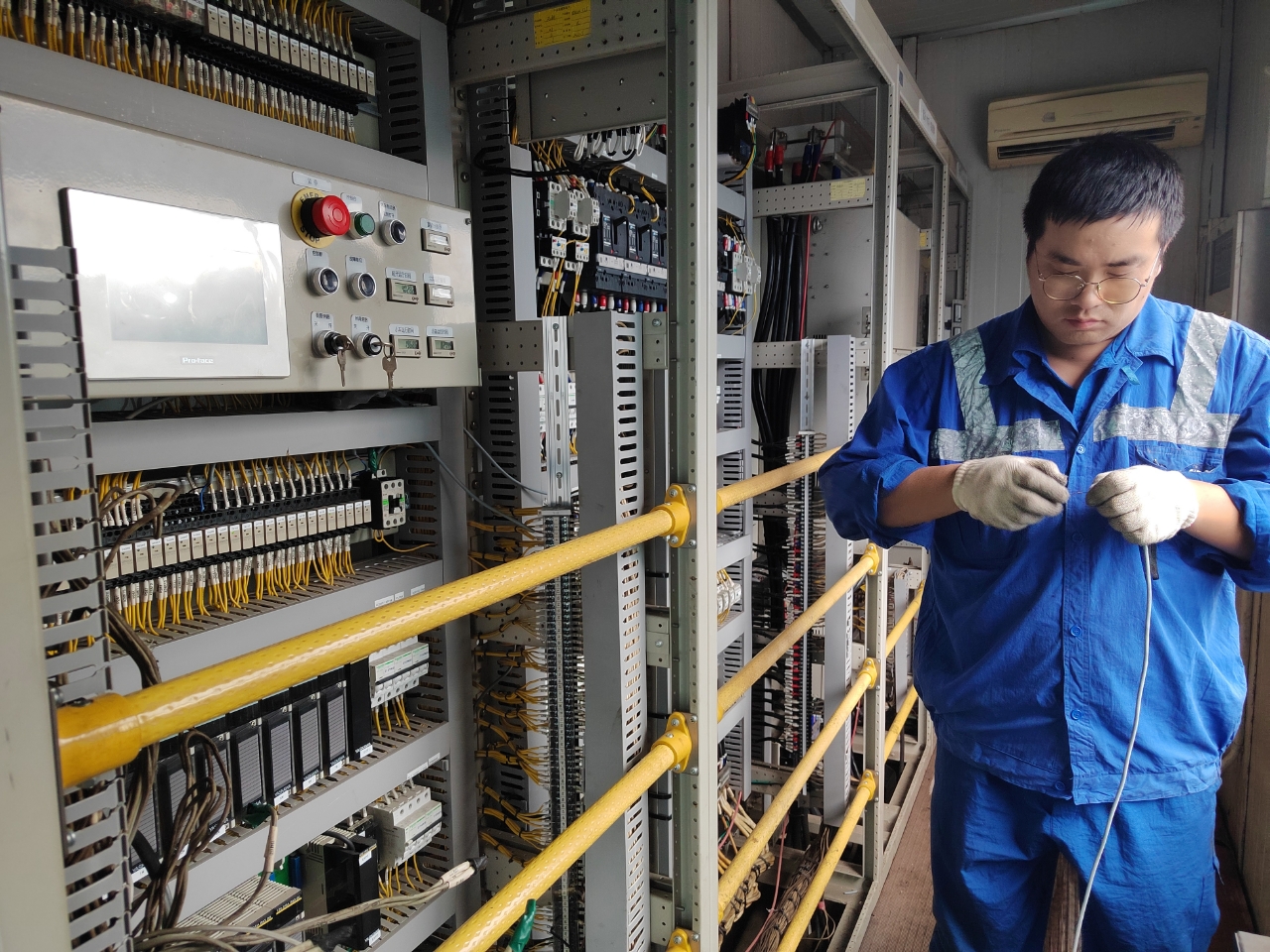 宜东分公司军工路作业区的23台轮胎吊作为物流作业关键设备,其传统蜂鸣警报系统虽保障了作业安全,却在夜间产生持续性噪声,成为影响周边居民休息的“民生痛点”。群众的期盼就是攻坚的指令,面对改造任务时间紧、施工难度大的双重考验,工程技术部设备二组职工们更是闻令而动,党工团突击队员主动请缨,组建专项攻关组,将民生诉求转化为技术革新的具体目标。他们没有满足于简单套用现有方案,而是坚持问题导向,深入作业一线开展3轮实地勘测,细致记录设备运行参数、作业环境特点与居民居住分布情况,结合夜间作业安全规范反复研讨,经过多轮优化,攻关组创新性提出“分时控制+智能照明”集成技术方案,让设备具备智能感知与模式切换能力 ——每日19:00 至次日7:00自动转入静音模式,以高亮度、低能耗的 LED警示灯替代传统蜂鸣器,既守住了作业安全底线,又从源头消除了噪声污染,实现安全与民生的双赢。这背后,是他们对技术精益求精的追求,更是对民生福祉的深切关怀。