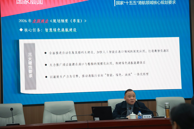 会上,俞总围绕公司“十五五”发展规划,从发展背景、总体战略、核心业务发展规划等方面展开系统宣讲。俞总指出,“十四五”期间公司在吞吐量提升、数智化应用、市场体系构建上取得显著成绩,而“十五五”期间港口行业将进入高质量发展转型阶段,公司面临“五期叠加”的内外环境,既有机遇也有挑战,全体员工需认清形势、进一步主动作为。
