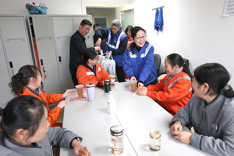美味暖心,在细微处传递温情关怀。食堂精心烹制了暖心暖胃的苹果肉桂茶,每一个杯子上都贴有专属定制的特别祝福,字里行间满是心意。公司领导带队走访各岗位,将这份温热亲手送到每一位坚守岗位、认真工作的女职工手中。一句句问候、一杯杯热饮,让女职工们在忙碌的工作中收获了满满的感动与暖意,切实感受到工会大家庭的温情。